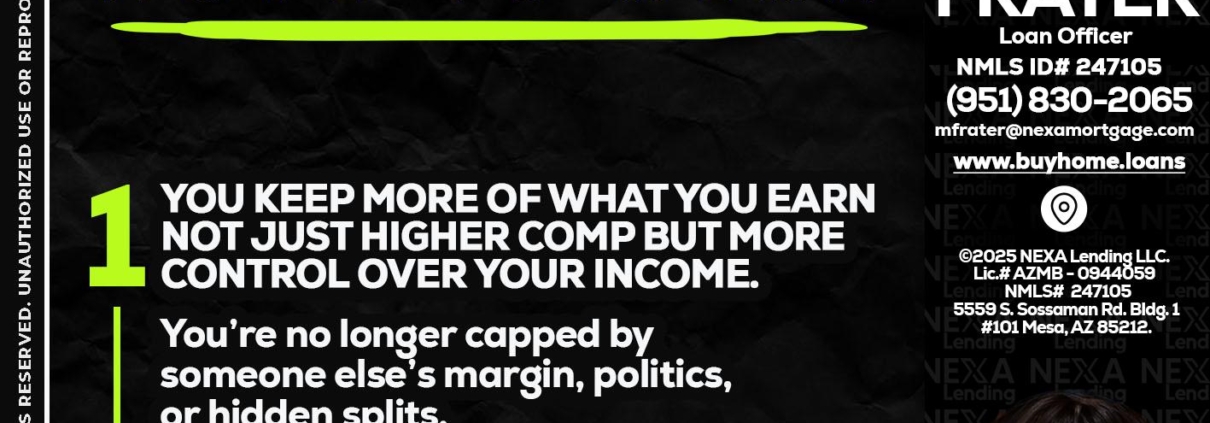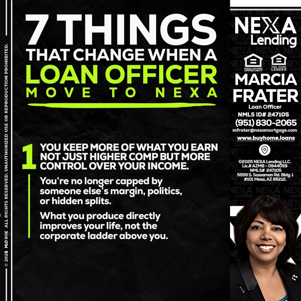 Hi, my name is Marcia Frater. I’m a Loan Officer with NEXA Lending LLC., offering personalized mortgage solutions, fast customized quotes, great rates and service with integrity.