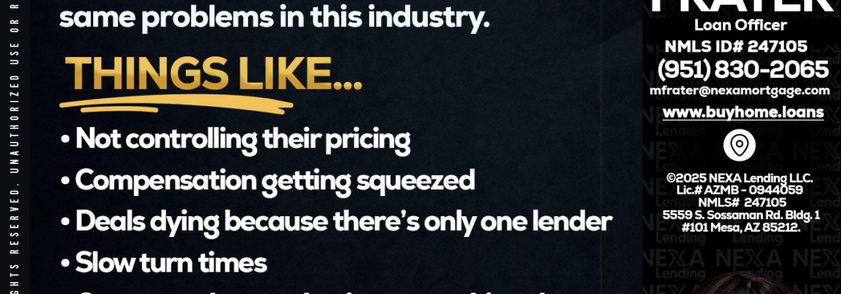 every Thursday - Marcia Frater -Loan OfficerHi, my name is Marcia Frater. I’m a Loan Officer with NEXA Lending LLC., offering personalized mortgage solutions, fast customized quotes, great rates and service with integrity.