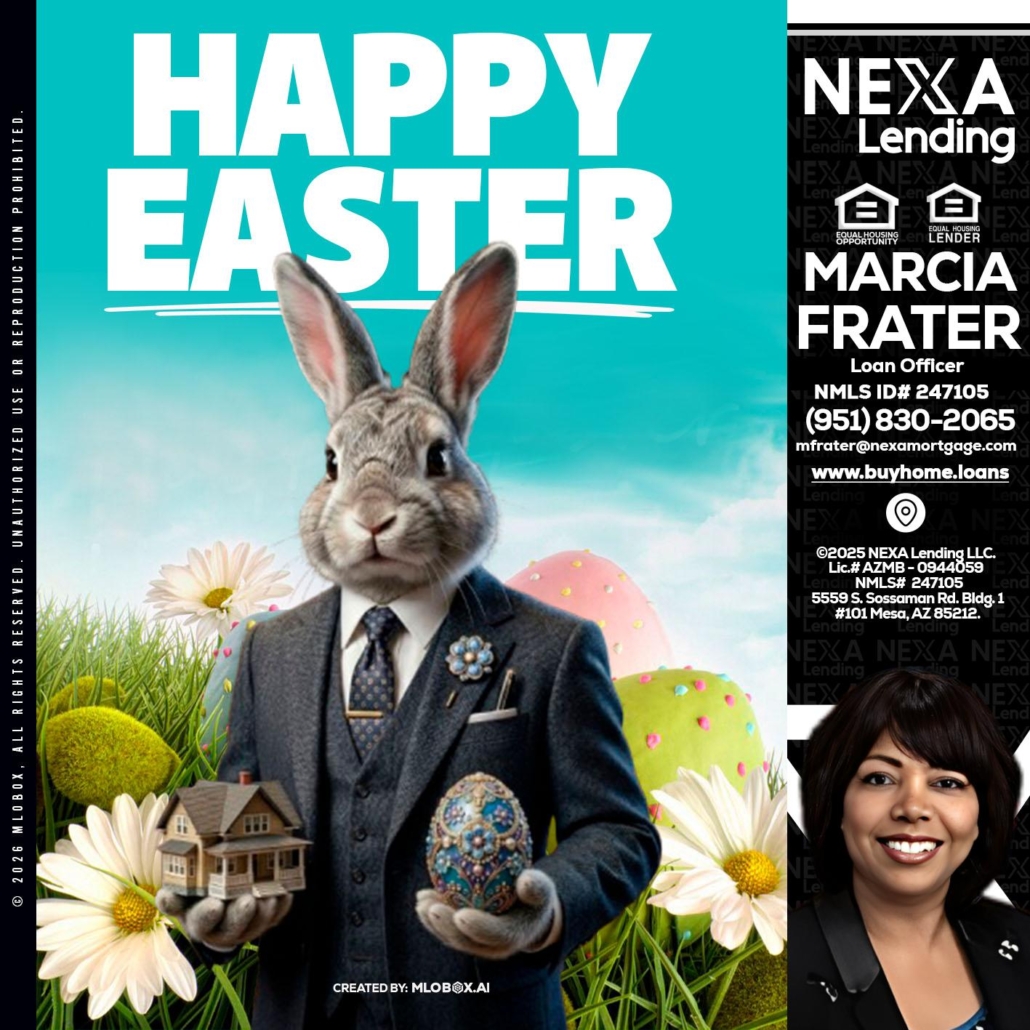 HAPPY EASTER - Marcia Frater -Loan OfficerHi, my name is Marcia Frater. I’m a Loan Officer with NEXA Lending LLC., offering personalized mortgage solutions, fast customized quotes, great rates and service with integrity.