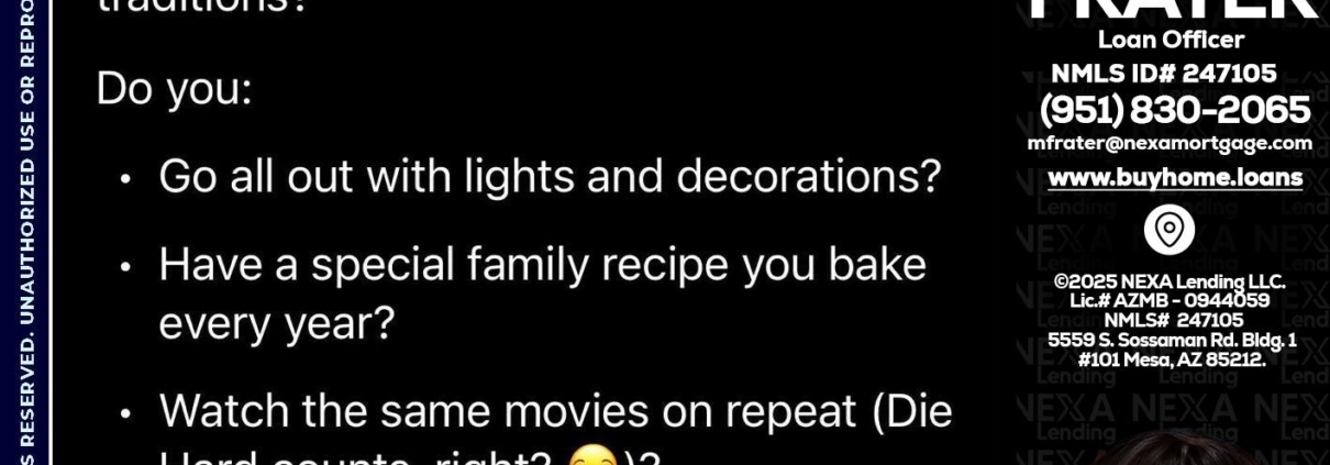 I love christmas - Marcia Frater -Loan OfficerHi, my name is Marcia Frater. I’m a Loan Officer with NEXA Lending LLC., offering personalized mortgage solutions, fast customized quotes, great rates and service with integrity.