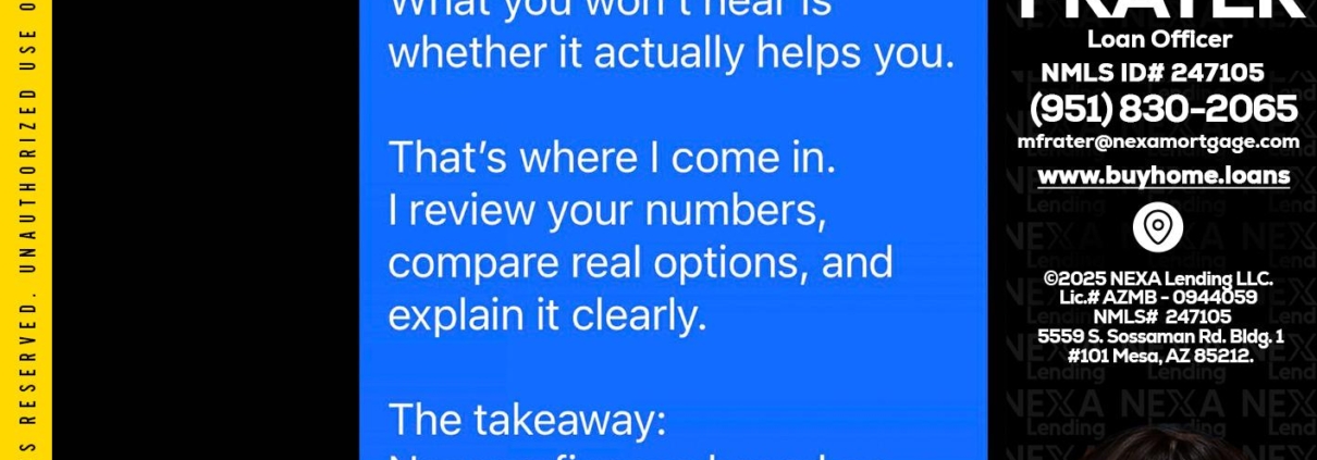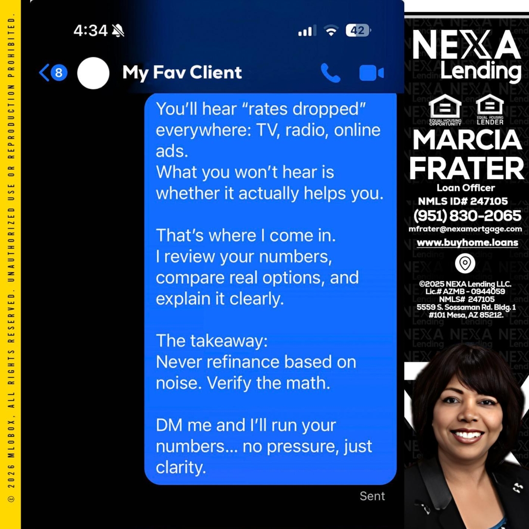 Hi, my name is Marcia Frater. I’m a Loan Officer with NEXA Lending LLC., offering personalized mortgage solutions, fast customized quotes, great rates and service with integrity.