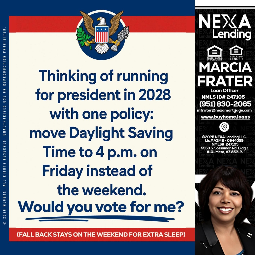 Hi, my name is Marcia Frater. I’m a Loan Officer with NEXA Lending LLC., offering personalized mortgage solutions, fast customized quotes, great rates and service with integrity.