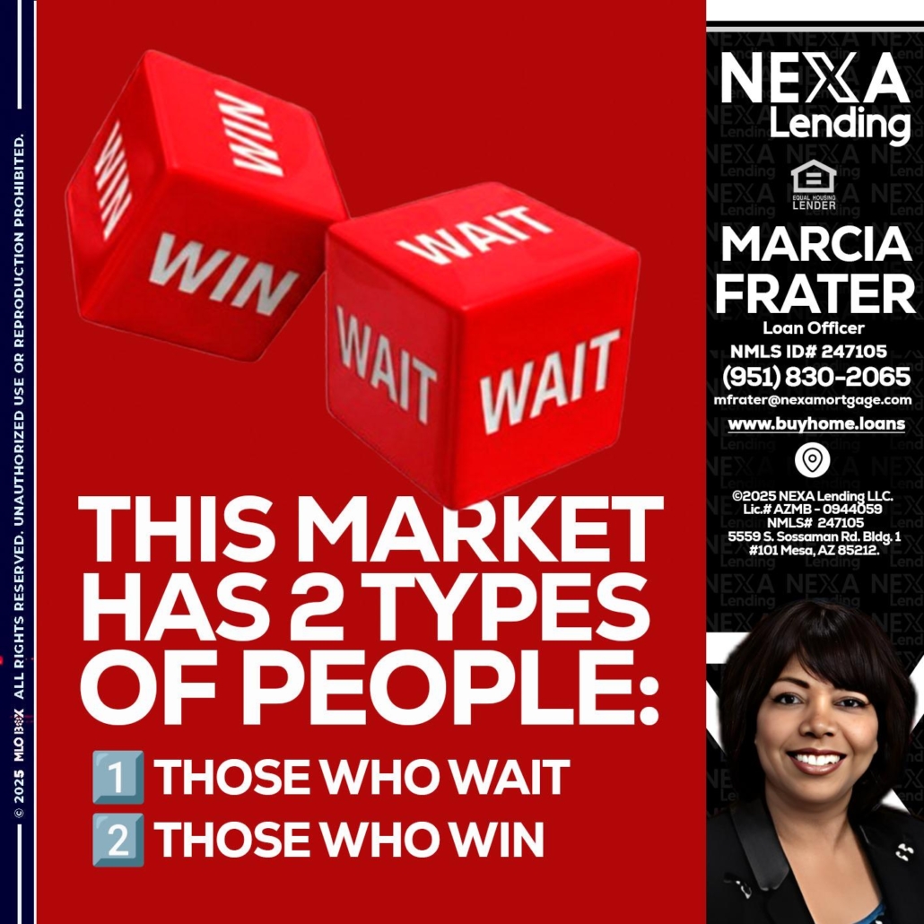 Hi, my name is Marcia Frater. I’m a Loan Officer with NEXA Mortgage LLC., offering personalized mortgage solutions, fast customized quotes, great rates and service with integrity.