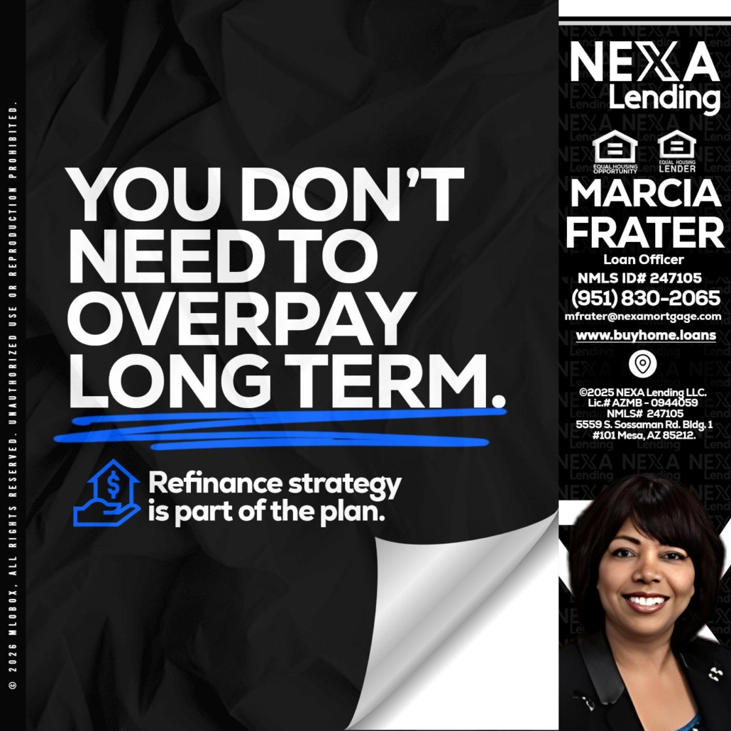 Hi, my name is Marcia Frater. I’m a Loan Officer with NEXA Lending LLC., offering personalized mortgage solutions, fast customized quotes, great rates and service with integrity.